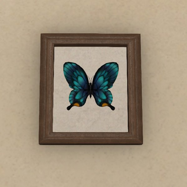 One of Il Mheg's many brilliant butterflies, mounted for display.