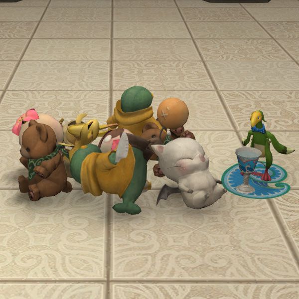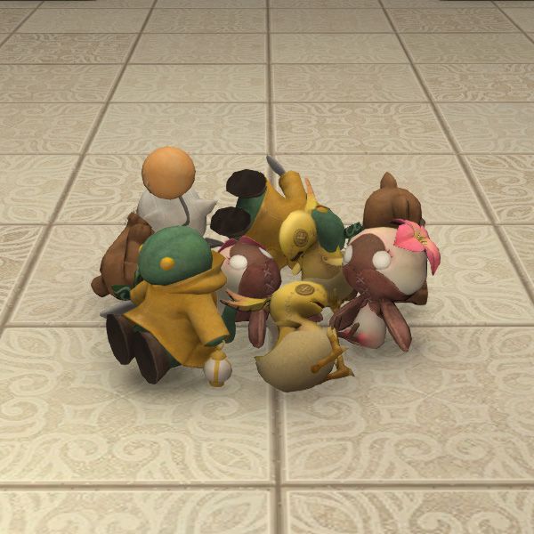 Stuffed moogles and tonberries and bears, oh my.
