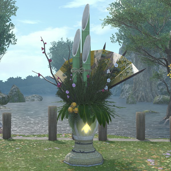 A mini-tower of sliced bamboo and pine branches─the kadomatsu is a Far Eastern oddity traditionally displayed at homes and in temples for the duration of Heavensturn.
