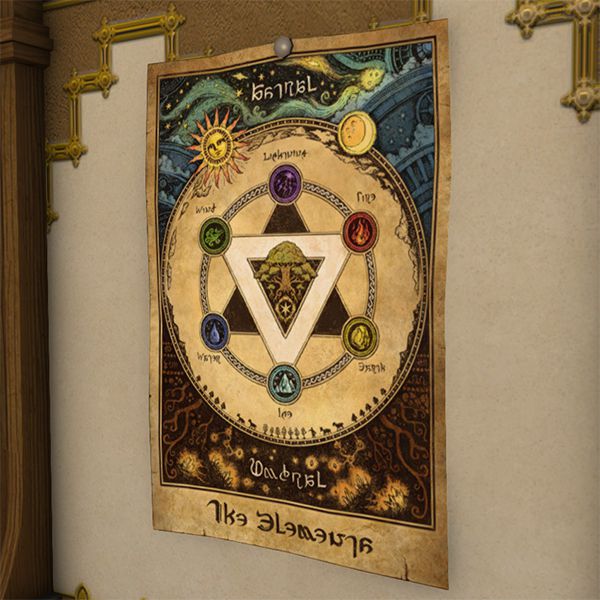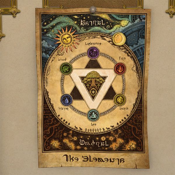 Depicts the intrinsic relationships between the six elements, which govern all life on this star, and probably a few other stars to boot.